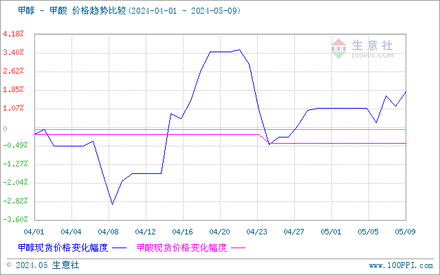 甲酸與上游甲醇價格對比圖: